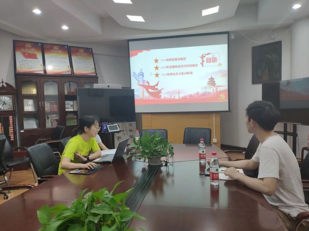 会议议程第二项曹文倩同志讲解2020年两会热点。她就2020年两会基本概述,全国两会召开时间确定以及两会五大看点分别进行了解读。曹文倩同志对2020年的两会内容做了全面的,立体的剖析,带领大家进一步了解国家焦点、重要大事,不断加强无机三支部党员、团员同志们对于时事热点的了解。