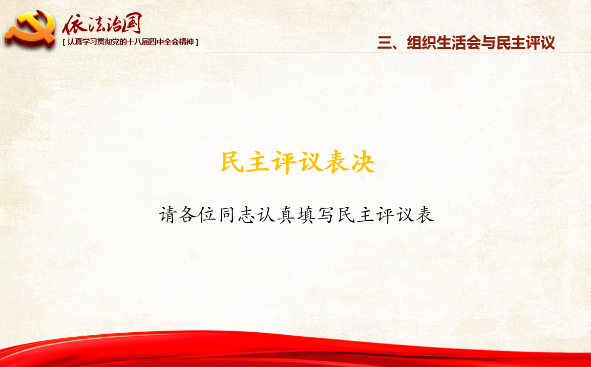 接下来第三部分是组织生活会和民主评议环节。决议批评与自我批评的分享以及支部成员。张碧辉和曹勐同志首先带头进行批评与自我批评,以及对支部工作意见与建议的分享。紧接着大家反思了自己近一年以来的不足与待改进的地方,也对支部的下一步发展提出了建设性意见。随后进行了民主评议表决。