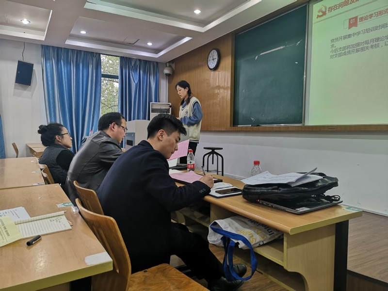 会上研究生和本科生共17个党支部书记先后述职,各支部书记分别围绕教育党员有力、管理党员有力、监督党员有力、组织学生有力、宣传学生有力、凝聚学生有力、服务学生有力等七个方面对党支部所开展的工作进行了汇总介绍。各支部积极落实“三会一课”,提升支部组织力,并通过开展各类创新型党建活动,如设立图书角、学习传统文化及开展体育锻炼等,努力调动党员的积极性。在疫情期间,各支部积极开展线上活动,分享身边的抗疫故事。同时大家还提出了支部建设中存在的一些问题,如部分党员参与度较低、支部间互动较弱等,并通过分析原因提出了具体的改善措施。最后大家根据本支部的具体情况展示了支部今后的工作思路。述职完毕后,全体与会人员对现场述职的支部书记进行了评议打分。