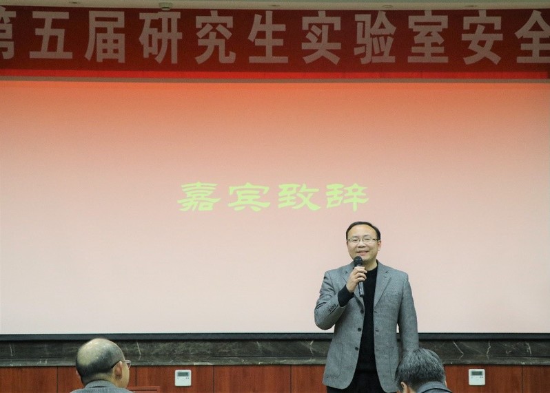 在比赛开始前,张士良老师为本次决赛致开幕辞,感谢了党委研工部对本次比赛的大力支持,也表达了学院对本次活动的高度重视。张老师表示,为了深入贯彻落实党中央、国务院关于安全工作的系列重要指示和部署,切实增强高校实验室安全管理能力和水平,浙江大学材料学院从2016年就创办了以“Lab & Life”为主题的研究生实验室安全文化建设项目,旨在通过以实验室安全知识竞赛的形式,强化安全红线意识,提升广大研究生同学的实验室安全意识和技能。同时,张士良老师也希望通过本次知识竞赛让参与的各位同学都能成为各院系实验室安全学习的模范和带头人,共同构筑“人人讲安全、人人懂安全”的和谐实验室氛围。