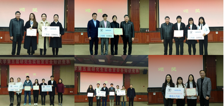 本次知识竞赛由徐呀静、朱椿楠、吴遵纯组成的孤对电子对队获得本次比赛的一等奖。由王宣程、刘锋、王彩云组成的毕业就行队和由董娇娇、刘翠兰、尹珂娜组成的乘风浪的菲瑞队以及由焦瑞泽、李银汇、刘佳琳组成的1084交流会队荣获本次比赛的二等奖。 而三等奖由韩屾、张敏、汪越楚组成的往届冠军的师弟师妹队和由张承、刘春晓、王静文组成的春眠不觉晓队和由王泽钜、绳新如、吴奕韬组成的年轻人不讲武德队以及由梁嫣、蔡晓波、樊阳组成的大菠菜队获得。同时通过我们的现场互动拉票环节以及线上投票统计,由孤对电子对队的三名同学用有趣又实用的实验安全视频荣获了实验室操作小技巧视频最佳人气奖!