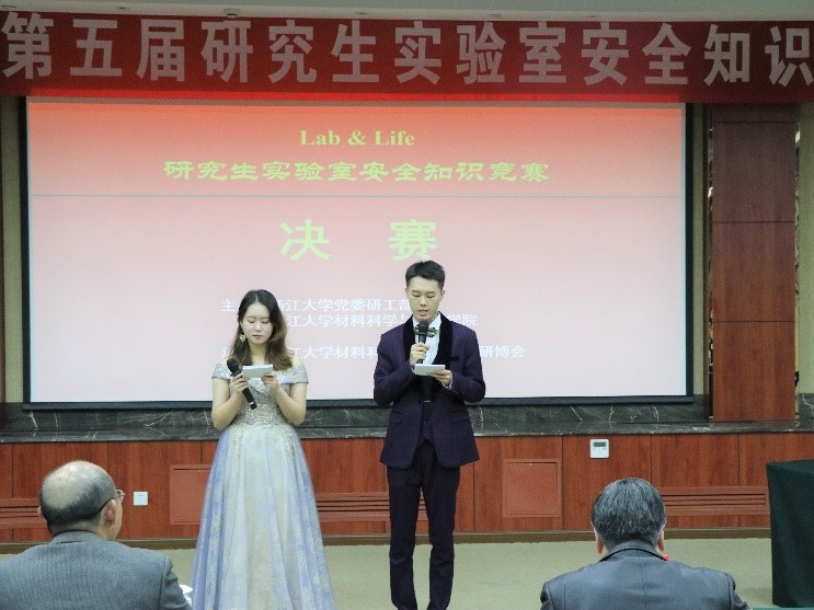2020年12月4日18:30,第五届浙江大学研究生实验室安全知识竞赛决赛在玉泉校区邵科馆212成功举行。浙江大学玉泉校区党工委书记马银亮、实验室与设备管理处技术安全管理处处长冯建跃、浙江大学安全保卫处副处长赵增泽、浙江大学党委研究生工作部副部长张晓洁、材料学院副院长陈立新、材料学院党委副书记张士良、材料学院实验室秘书应窕、材料学院团委书记李由参加本次活动。