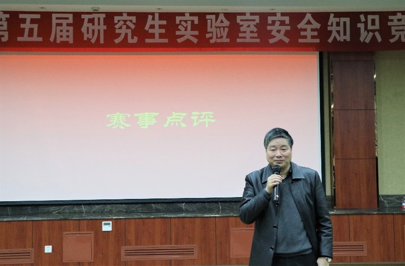 随着观众互动环节的结束,我们的活动也接近尾声,参与决赛的八支队伍均取到不错的成绩。冯建跃处长也为本次活动进行了总结和点评,他对本次比赛体现出的特色实验室文化建设和团队精神给予了高度评价,既丰富了的学习生活,也使同学们在快乐中加深对实验室安全的认识。此外,冯处长还强调安全无小事,不管身在校内还是校外都要紧绷安全意识,为社会和国家共筑安全防线。