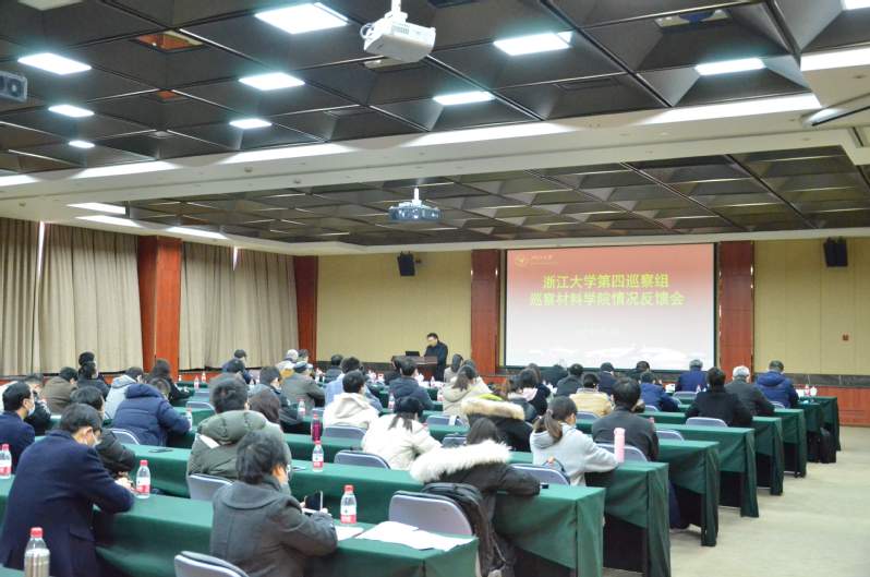2021年1月14日上午,浙江大学第四巡察组巡察材料科学与工程学院情况反馈会在玉泉校区邵科馆211会议室举行。学校第四巡察组全体成员,材料学院全体党政领导班子成员、内设机构负责人、教工党支部书记代表、各研究所(中心)负责人和教职工代表、民主党派代表、工会和教代会代表、离退休教职工代表、学生代表等70余人参加了会议。材料学院院长、党委副书记韩高荣主持会议。