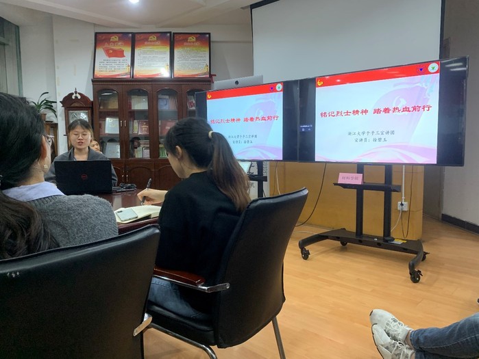 2021年3月30日,于浙江大学玉泉校区曹光彪大楼326会议室,材料学院金属所第三党支部,半导体所第一、第四党支部成员,在即将迎来中国共产党成立100周年暨抗美援朝60周年之际,上了一节深沉的党课。