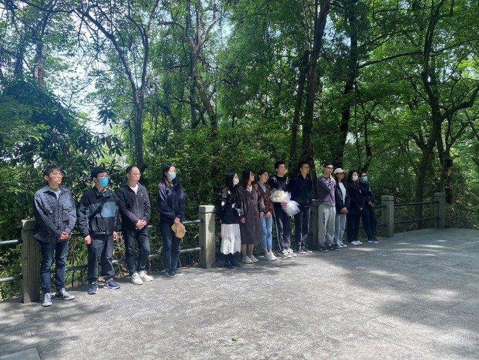 在庄严的氛围中,全体党员低头默哀,无声而庄严地告慰英烈,并由毕嘉鹏同志代表党支部全体党员向于子三烈士敬献白菊。如今,子三烈士安静躺在万松书院的一个角落,他虽已长眠,但留下的于子三精神,却始终伴随着一代又一代学子,指引一批又一批青年人前仆后继、奉献自我。