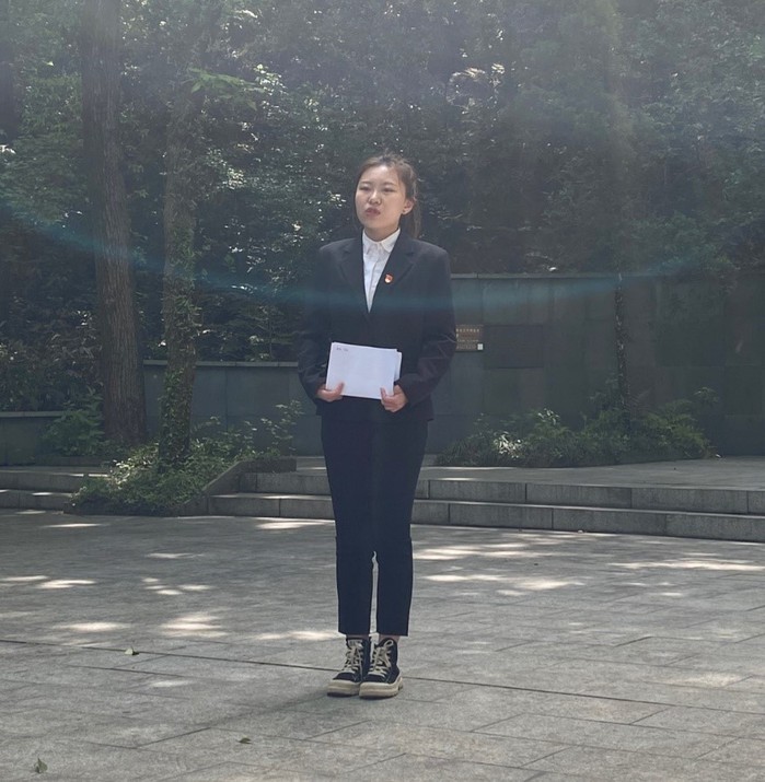 首先,来自浙江大学农学院于子三宣讲团的宣讲员王清晴为大家介绍了于子三烈士短暂而又辉煌的一生。于子三烈士曾担任浙江大学学生自治会主席、浙江区学联、全国学联等的联络人,同时也是党的神秘外围组织“新民主青年社”华家池分社负责人。他思想进步,积极投身于革命,在严酷的斗争中逐步成长为学生领袖。1947年10月29日于子三不幸被国民党特务逮捕,后英勇就义,牺牲时年仅22岁,这就是震惊全国的“于子三事件”。