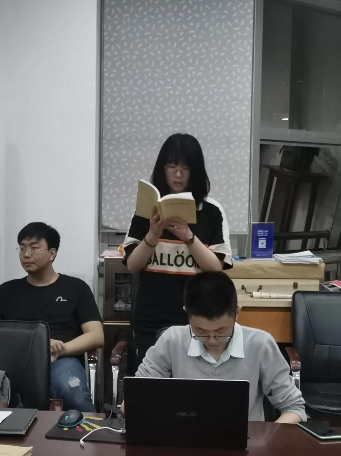 会议最后一部分是“读党史、悟新知”党史学习教育,依次由五位正式党员代表、一位预备党员代表与一位发展对象代表轮流朗读《论中国共产党历史》这本书中触动他们心弦的部分内容。在建党百年的这个关键时期,大家饱含感情的朗读声令在场的同学陷入了深深的思考。读史是度过去,更是明现在、见未来,通过本次党史学习教育,大家不仅领会到了党的历史与使命,更对党对青年的要求与殷切期望有了新的体会。