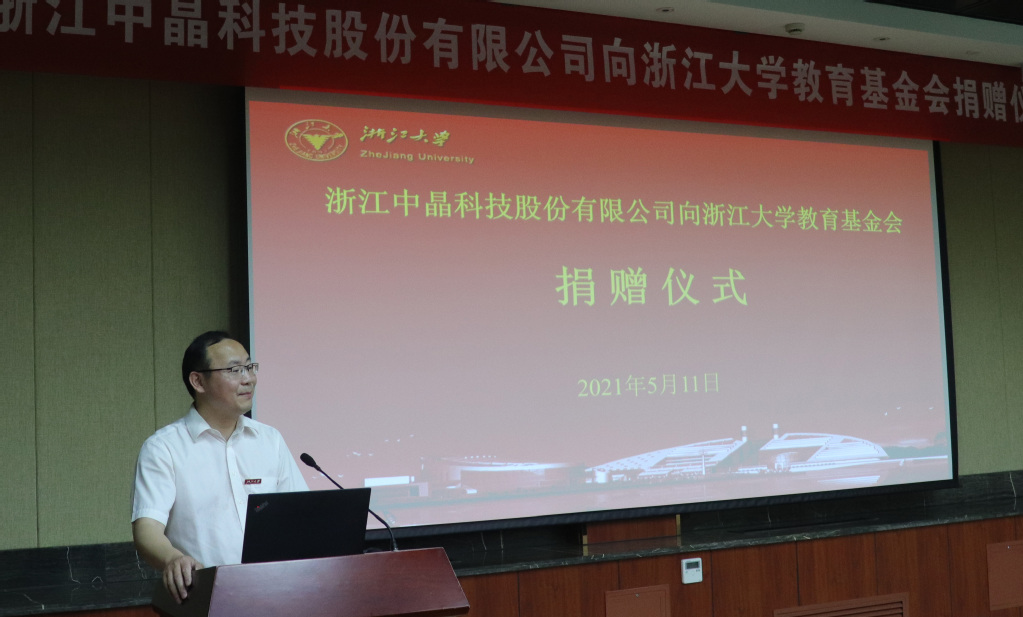 2021年5月11日上午,浙江中晶科技股份有限公司向浙江大学教育基金会捐赠仪式在玉泉校区邵逸夫科学馆212会议室顺利举行。浙江中晶科技股份有限公司董事长徐一俊,副总经理黄笑容、李志萍,中国科学院院士杨德仁,浙江大学教育基金会秘书长、发展联络办公室主任沈黎勇,威廉希尔WilliamHill官方网站院长韩高荣、党委书记王晓燕等参加了捐赠仪式,仪式由材料学院党委副书记张士良主持。