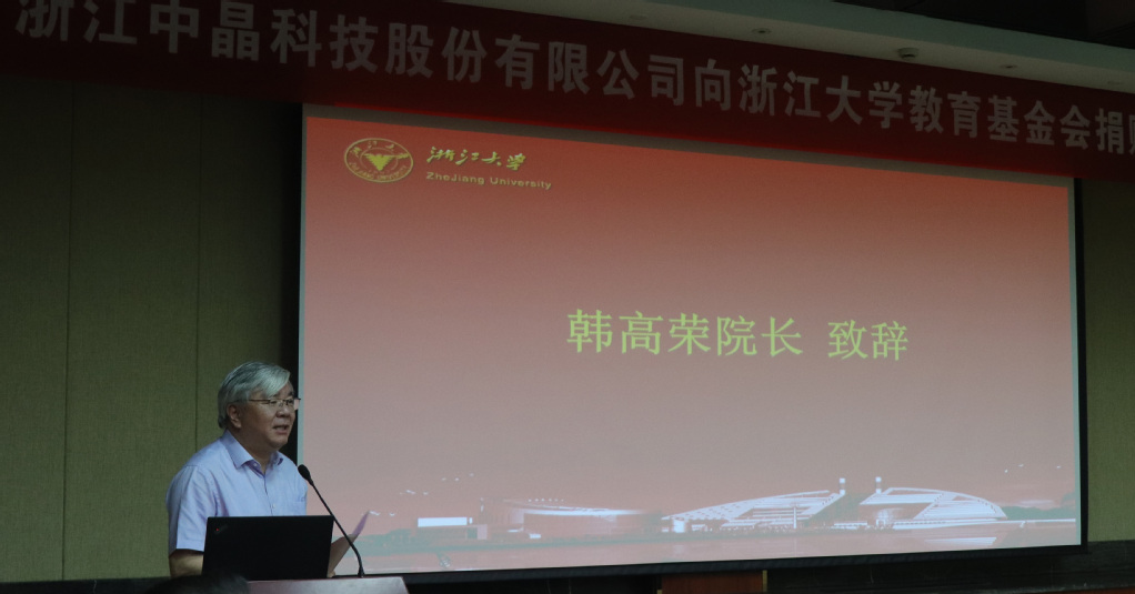 接着,材料学院院长韩高荣代表学院向中晶科技进行捐赠以支持学院发展表示衷心感谢,在简要介绍材料威廉希尔WilliamHill官方网站的基础上,汇报了学院近年来在科研学术和学科建设等领域取得的丰硕成果,回顾了浙大硅材料事业的发展史,并对中晶科技十年发展、成功上市表示热烈祝贺,期待公司事业能够更上一层楼!