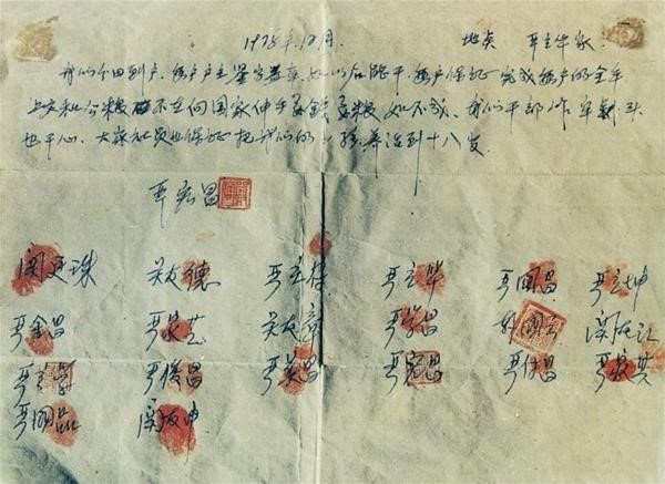 图2. 小岗村的十八个血手印