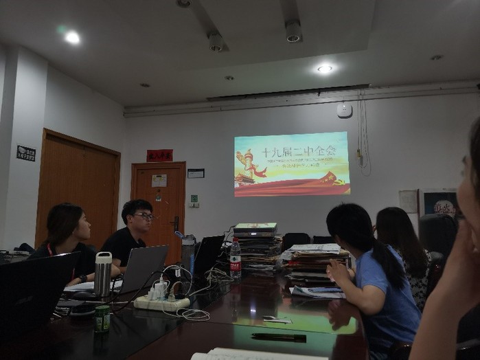 随后,罗旭茗书记带领大家学习了习近平总书记在清华大学考察时的讲话精神;陈勇杰副书记带领大家学习了十九届二中全会、三中全会精神。在读过了历史以后,支部党员们对现今的政策和方案有了更深的体会,对自我修养的提升、今后努力的方向有了更好的把握。