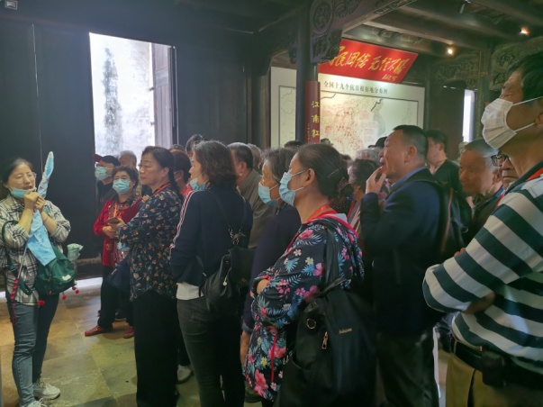 5月22日上午,大家坐车前往位于苏浙皖三省交界的长兴县煤山镇温塘村新四军苏浙军区纪念馆。纪念馆占地3400平方米,庭院西侧为新四军苏浙军区司令员粟裕将军骨灰安放纪念碑,东侧是“军民鱼水情”雕塑和新四军苏浙军区纪念碑。整个馆区分四个展厅收藏和陈列750件革命历史文物,420帧历史珍贵照片。这些物件和照片生动形象地反映了新四军苏浙军区抗日反顽革命斗争史迹和坚持抗战的辉煌业绩。大家在讲解员的带领下,重温了新四军抗日革命斗争的辉煌史迹,感受了他们为党和人民兢兢业业、无私奉献的铁军精神。
