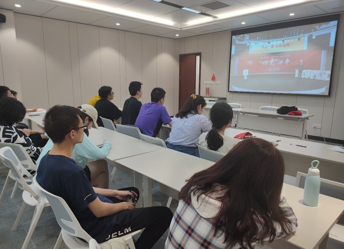 最后,大家集体学习“‘四史’讲堂思政大课”。初心的力量、信仰的光芒,随着一个个隽永的红色故事流淌而出、动人心魄,传递着蓬勃力量,焕发着时代光彩。党史、新中国史、改革开放史、社会主义发展史虽然所处时期不同、任务不同,但从历史主体性来看,“四史”实际上是人民群众逐渐意识到自己的历史主体地位,创造自身和人类美好生活的历史。大家抬头侧耳倾听,不时在笔记本上认真记录所思所感,收获颇丰。