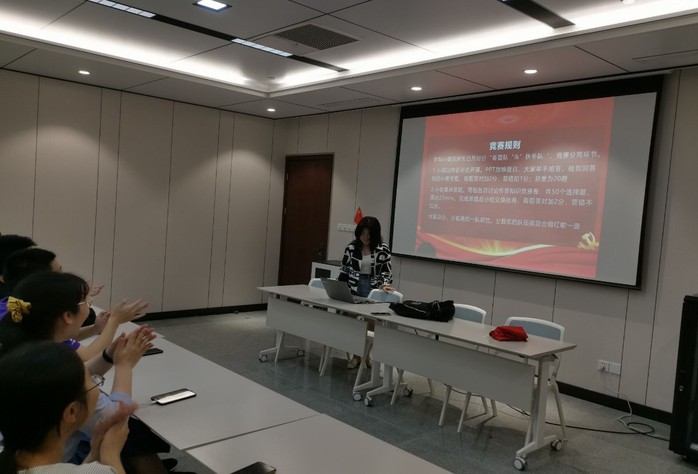 随后,在党建馆红色放映厅,本科生一支部举行了党建知识竞赛。习近平总书记多次强调, “中国革命历史是最好的营养剂”。本次党建知识竞赛,便是着眼于中国革命历史背景下的党的建设发展。竞赛共分两环节,分别为小组抢答与小组集体答卷。在主持人的引导下,大家踊跃抢答,积极参与小组竞赛,放映厅内顿时充满了同志们热情洋溢的讨论和回答。
