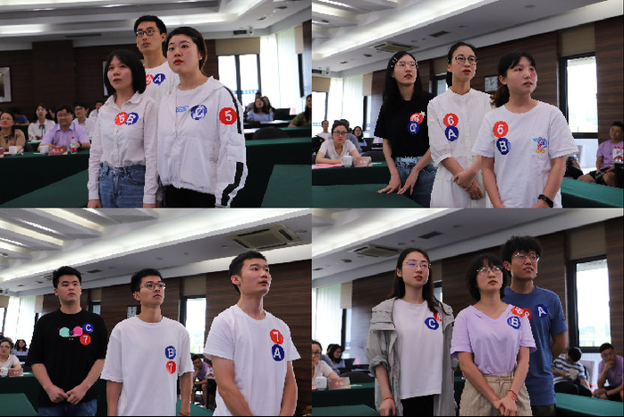 第二环节“激流勇进”,八组选手共同上台抢答,团队抢答成功后,可由队伍中任意一位同学给出回答,限时内答对得2分,答错扣1分。竞赛选手比抢答速度、比反应时间、比心理素质,各参赛队伍反应迅速、配合默契、沉着应对、各展风采,现场气氛紧张热烈,竞赛进入“白热化”。