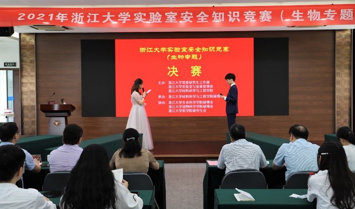 为深入学习宣传贯彻《安全生物法》,进一步增强全校师生维护生物安全的责任意识,全面提高生物安全治理能力,尤其是提升实验室生物安全防控水平, 6月29日下午,浙江大学实验室安全知识竞赛(生物专题)决赛在紫金港校区校友楼紫金港厅举行。实验室与设备管理处处长唐睿康、安全保卫处副处长赵增泽、实验室与设备管理处实验室技术安全管理办公室主任张银珠,材料学院党委书记王晓燕、副院长陈立新、副书记张士良、实验室秘书应窕和团委书记、研究生辅导员李由等老师参加了本次活动。