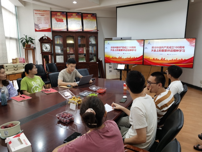 首先由组织委员李飞雨同志进行《庆祝中国共产党成立100周年大会上的重要讲话精神学习》专题党课汇报。李飞雨同志以“承前启后”为主脉络、党史上的人事物为细节填充,带领我们学习了“七一”讲话的主要内容:“杀了夏明翰,还有后来人!”这一革命烈士之言诠释了中共产党不怕牺牲,英勇斗争的伟大建党精神;从回顾中国共产党百年光辉历程的四项伟大成就,到展望中华民族伟大复兴要做到的九个必须。而九个必须中的“以史为鉴、开创未来,必须团结带领中国人民不断为美好生活而奋斗”,更是提醒与督促广大党员践行“对党忠诚,不负人民”的立足点与出发点。