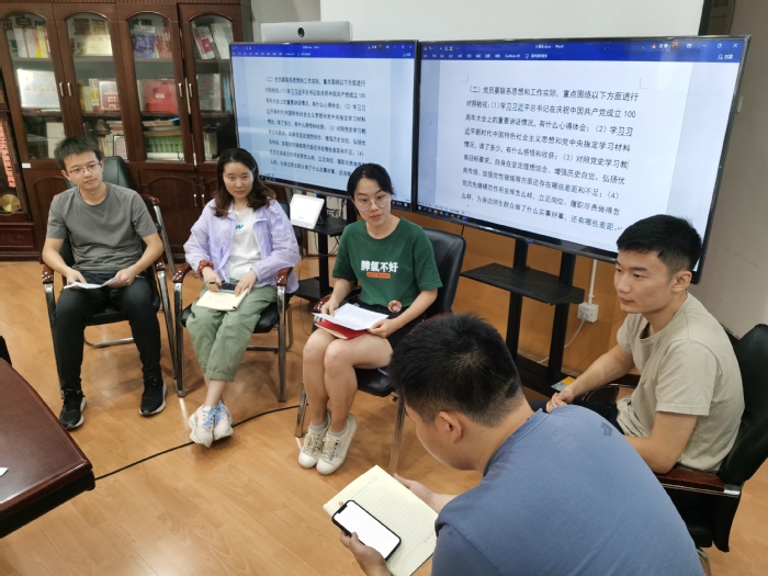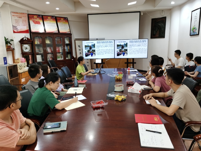 随后,易洋同志就2021年春夏学期党支部工作进行小结。党员发展方面,无机一党支部共接收预备党4名,完成预备党员转正1名;并完成“两优一先”评选工作,获评“2021年材料学院先进党支部”,支部两位同志被选为院级优秀党员。党史学习教育中,党课学习方面,支部开展专题党课3次,支委讲党课2次,并邀请新党员分享党史学习心得;此外还进行了在线答题活动、集中观看线上党课等活动;同时举办主题党日活动两次,分别为重温入党誓词,同过政治生日;与校史馆、艺博馆参观活动。