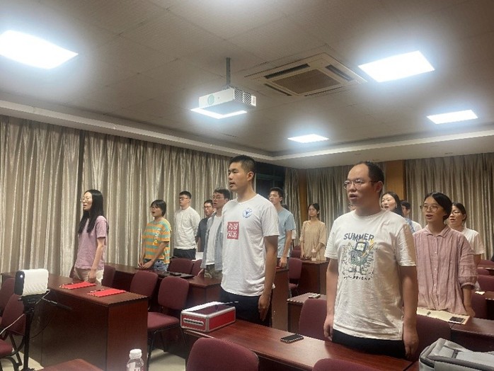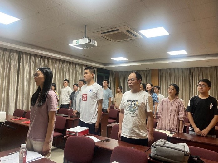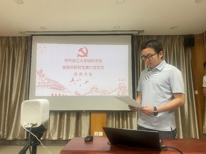 2021年9月23日晚6:30,中共浙江大学材料学院金属所研究生第六党支部在铸工楼C204召开全体党员大会,讨论党支部委员会换届事宜。会议开始前,到会党员全体起立奏唱国歌。首先由党支部书记王宣程同志代表上一届支部委员会对支部上一年的工作进行总结报告,他强调党团两个支委应在现有基础上互相帮助,主动发掘优秀的团员分子,并且加强打造支部间的互联互通。