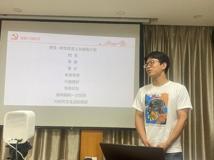 随后,在新老党员见面会上,老生和新生轮流上台进行自我介绍。大家主要从姓名、年龄、家乡等基本信息进行介绍,分享自己认为有趣的一次经历,并对于研究生生活的期望以及浙江大学新发展阶段使命愿景大讨论发表自己的看法。在见面会后,党支部举办了“为新生办实事”交流讨论会,支部的新生党员从课程安排、科研学习、毕业去向等方面向各位老生党员提问,老生党员们则根据自身经历为新生们解答困惑。通过本次新老党员见面会以及“为新生办实事”交流讨论会,金属六支部内新老党员增进了相互间的认识了解,进而使金属所第六支部这个大家庭的感情迅速升温,为日后支部活动的开展打下良好基础。