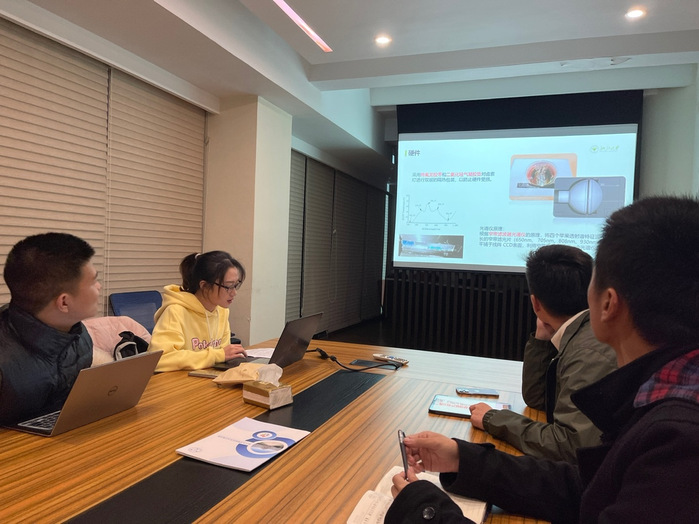 首先进行答辩的是来自19级的吕心怡同学,其所负责项目名称为《健康饮食管家—无损食品检测技术的运用》,项目设计了基于手机CMOS操作的近红外光谱光电检测技术的与智慧农业概念打造私人的健康管家产品,为使用者提供信息识别、热量检测、健康管理与社区交互等功能。吕心怡同学提到,团队在项目开展过程中,首先初期通过实践调研了解到了部分乡村地区水果产业的供需结构失衡,品质分选能力、品牌议价能力有待提高。在该背景下,团队在老师与课题组协助下攻克技术难题完成了基于智能手机的糖度无损测量仪设计。对于该项目,评委对项目产品的后续发展计划表示关切,并祝愿团队能在之后的创新创业类赛事中再创佳绩。
