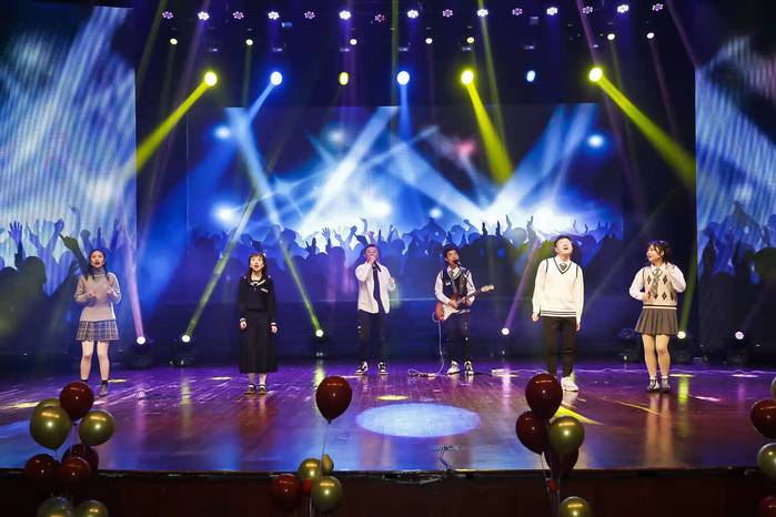 最后,在刘云泽、张丁铄、陆杨丹、胡月、郑子成、高贇同学的90后金曲串烧中,晚会也进入了尾声。
