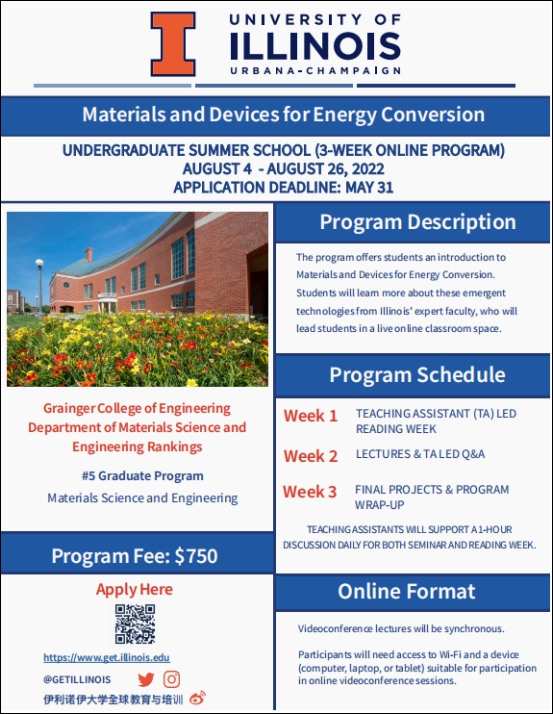 ​【材料学院】(本科生)2022年伊利诺伊大学暑期线上课程项目报名通知
