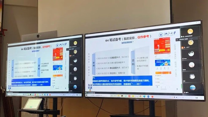 第三位进行分享的是2022届硕士毕业生王金田师姐。王金田师姐曾任材料学院无机四班班长,于绍兴市上虞区发改局实习,曾获浙江大学优秀研究生、社会实践优秀团队、社会实践优秀调研报告等奖励。选调经历丰富,参与四川、吉林、山东、江苏、央选、浙江选调笔面试。主要分享内容包括:1.对选调生的定位、分类以及优势进行介绍;2.梳理报考选调生的流程和需要准备的材料;在选择报考选调生的地区和岗位时所要考虑的因素;3.分享笔面试备考安排和所用的复习资料,提供参考;4.鼓励有志投身为人民服务工作的同学在疫情等不确定因素中,打好选调备考持久战。