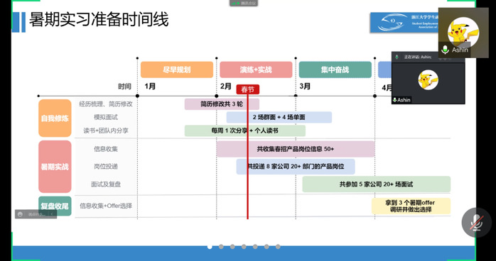 最后进行分享的是2022届硕士毕业生郭伟豪师兄。郭伟豪师兄具有丰富的互联网公司非技术岗实习经历,包括滴滴出行-商户侧产品经理、阿里妈妈-商业产品经理等,所获offer有:暑期实习获腾讯WXG、阿里妈妈、美团买菜offer;秋招获:腾讯WXG、阿里妈妈、美团地图、京东、拼多多offer。最终毕业去向为阿里妈妈商业产品经理。郭伟豪师兄针对互联网行业这一热门就业方向,向同学们进行了深入的介绍与分析,内容包括:1.讲述个人实习、求职经历;2.近两年产品经理岗位利弊分析;3.梳理产品经理岗位准备时间线;4.分享关于经历梳理、简历及面试的经验。