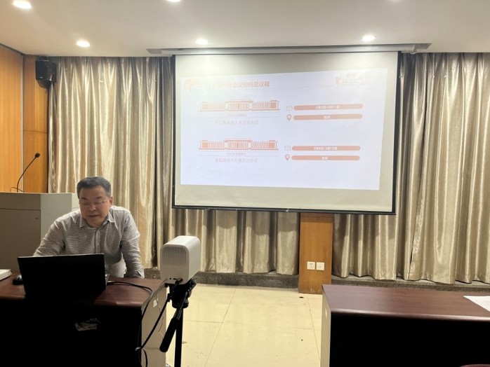 2022年全国两会即十三届全国人大五次会议和全国政协十三届五次会议。首先,朱铁军教授从2022年全国两会的会议议程开始介绍,缓缓拉开本次党课的序幕。2022年是中国共产党第二十次全国代表大会召开之年,是进入全面建设社会主义现代化国家、向第二个百年奋斗目标进军新征程的重要一年。召开背景赋予了今年全国两会独特的时代底色与意义。