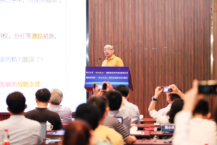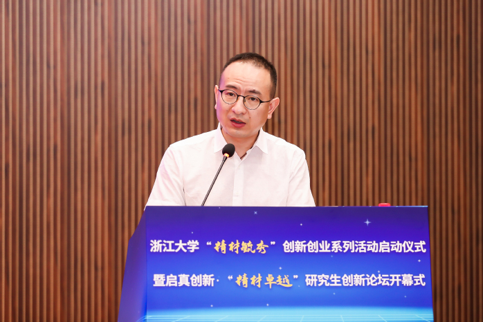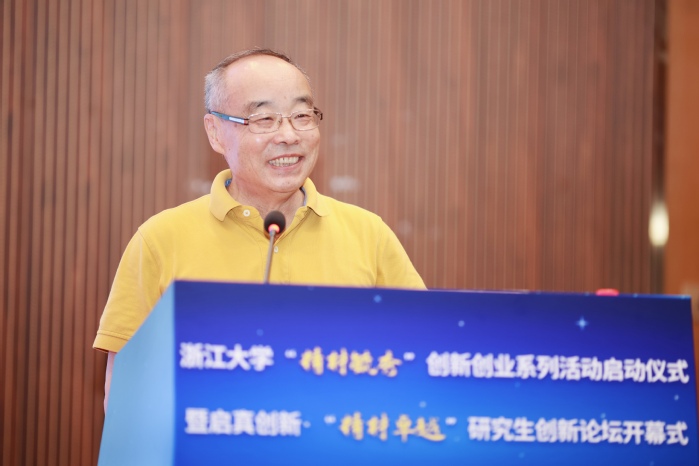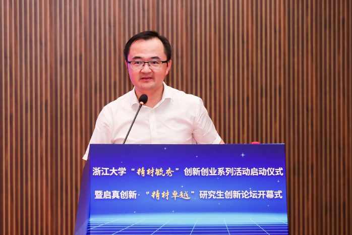 随后,浙江大学控股集团有限公司党委书记、董事长徐金强代表浙江大学控股集团和浙大创新院,对本次活动的举行表示热烈祝贺。在创新这个时代主旋律下,浙大探索形成了以“融”为特色、贯通思政教育、专业培养、科研实践、产业转化等各方面的创新创业教育体系。徐书记说,“融”是一种“开放”,“融”是一种机制,“融”更寓意着长远,作为学校“1+4+1”科学研究和成果转化体系的重要一环,浙大控股集团期待以创新创业教育为切入口,不断延伸合作触手,孵化出一批优秀的科技成果项目,培养出一批优秀的科技人才,为建设世界科技强国贡献智慧和力量。