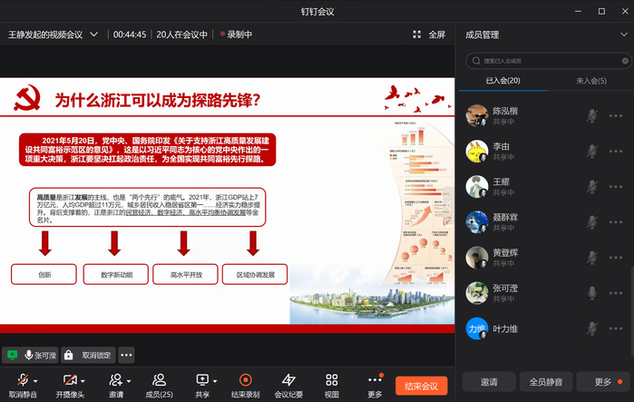 2022年6月20号,浙江省第十五次党代会在杭州召开,这次会议是浙江省迈入高水平全面建设社会主义现代化、高质量发展建设共同富裕示范区新征程后召开的第一次党代会。张可滢同志主要从三方面展开该会议的学习内容。一是会议报告内容概览,二是浙江省为什么可以成为探路先锋,三是实践案例。