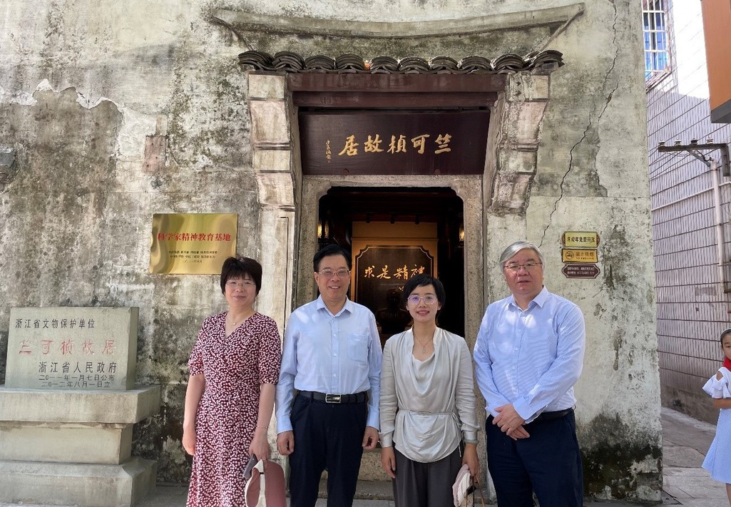 第二站竺可桢故居。故居分为两层,由正屋,侧屋及平屋三组建筑构成,走进正屋的大厅,首先映入眼帘的是竺可桢校长的铜像,背面墙上是“求实精神”四个大字,是竺校长留给浙大的珍贵的精神财富。随后在小小讲解员的带领下,老师们先后参观了竺可桢校长的书房,起居室,灶间等区域,并重温了竺可桢校长的生平事迹,更全面地了解了竺可桢校长的辉煌的一生。