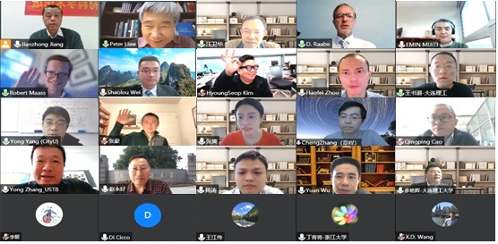 在大会主旨报告环节,来自美国田纳西大学材料科学与工程学院Peter Liaw院士给大家带来“An Introduction and High-throughput Design of High-performance Lightweight High-entropy Alloys”的主题报告,他在线播放高熵合金提出者台湾清华大学叶均蔚教授创作的“高熵合金之歌”作为序曲,用深入浅出的语言回顾了高熵合金材料近20年来的发展历程,包括高熵合金的起源、特点和性能等。最后以铝-铬-铁-锰-钛体系为例,讲述了基于calphad高通量计算方法,有效地寻找到由共格的BCC和L21相组成的轻质高熵合金成分,为发现和设计高强度、低密度和低成本的轻质高熵合金材料指明方向。他指出,未来关于高熵合金基本的理论研究依然是必要的,比如扩散问题,为在场的博士生提供了一个清晰的研究方向。北京科技大学张勇教授简要地介绍了我国这些年来在高熵合金材料领域取得科研成绩,指出熵的概念已经被用来作为一种有效的策略来开发新材料,以打破现有材料的性能记录。例如,打破合金高强度和高塑性之间的权衡。对于结构材料,尤其在复杂的情况下,需要多种性能的平衡,比如磁性材料通常表现出优异的磁性,但机械性能和耐腐蚀性能较弱;高熵合金的自愈效应可能使其具有较高的抗辐照性能,而钨基高熵合金的自锐化行为又主要和其锯齿形行为密切相关。“鱼和熊掌不可兼得”,在科研中同样渗透着人生的哲理,勉励博士研究生们在生活中要学会善于取舍。韩国浦项工大的Hyoung Seop Kim院士作了题为“Sheet formability of high-entropy alloys”的大会报告,介绍了韩国在高熵合金材料方面的研究成果,重点是对高熵合金成形性能的评价。发现和304不锈钢以及TWIP钢相比,钴铬铁锰镍高熵合金具有较低的裂纹萌生率和良好的成形特性。“产学研”相结合,学以致用是Kim教授教给参会博士研究生们留下的最深印象。科研工作者不仅要考虑学术问题,还要推动产业化,让科研成果真正走向老百姓的生活。