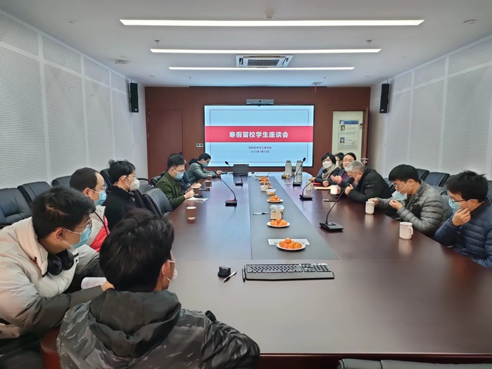 冬意渐浓,温暖亦至。1月16日下午,材料学院在和同苑10幢217会议室召开了2023年寒假留校学生座谈会,切实关切留校过年的材料学子们的学习生活情况。材料学院党委书记王晓燕、副院长程逵、党委副书记王育萍、专聘副院长吴浩斌、院长助理邓人仁与寒假留校学生共同参加了本次座谈交流。会议由团委书记李由主持。