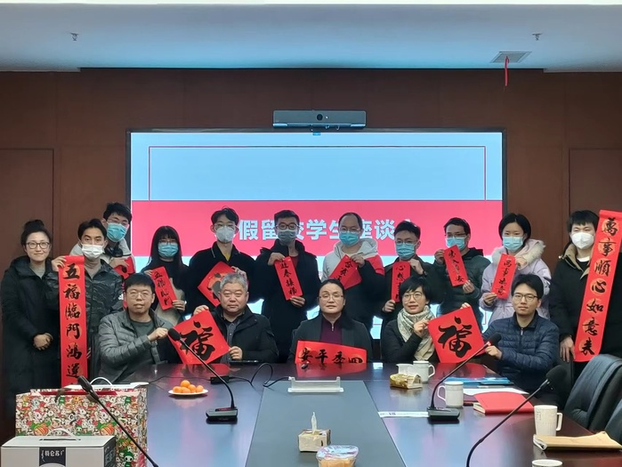 活动伊始,留校的本科生和各所研究生简单介绍了各自的情况,畅谈了自己的学习近况、生活感悟和未来计划。党委书记王晓燕、副院长程逵、党委副书记王育萍、专聘副院长吴浩斌、院长助理邓人仁相继为同学们送上了诚挚的新春问候和祝福,希望同学们做好个人防护,注意身体健康,合理安排学业科研时间,劳逸结合,保持乐观向上的积极心态,在学校度过一个充实而有意义的假期。