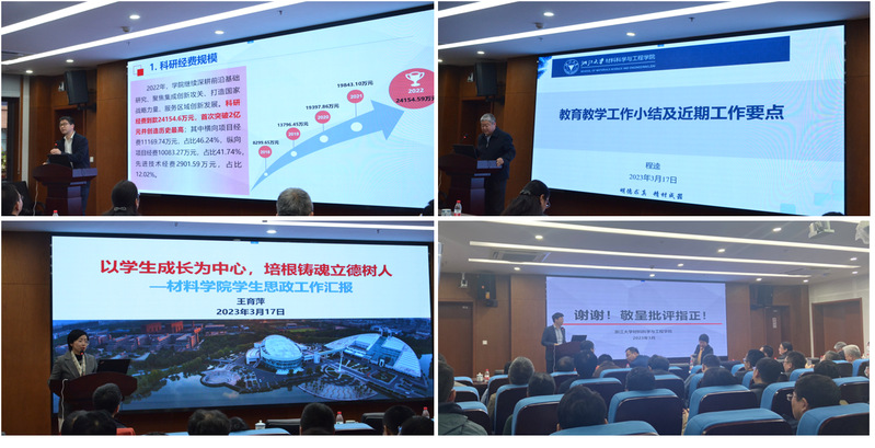 3月17日,材料科学与工程学院2023年全院教职工大会在紫金港校区材料新大楼顺利召开。这是材料学院有序完成跨校区搬迁后,第一次在新大楼召开学院全体教职工会议。学院杨德仁院士、叶志镇院士,学院领导班子成员,各研究所/中心、机关等全体教职工参加会议。会议由专聘副院长吴浩斌主持。