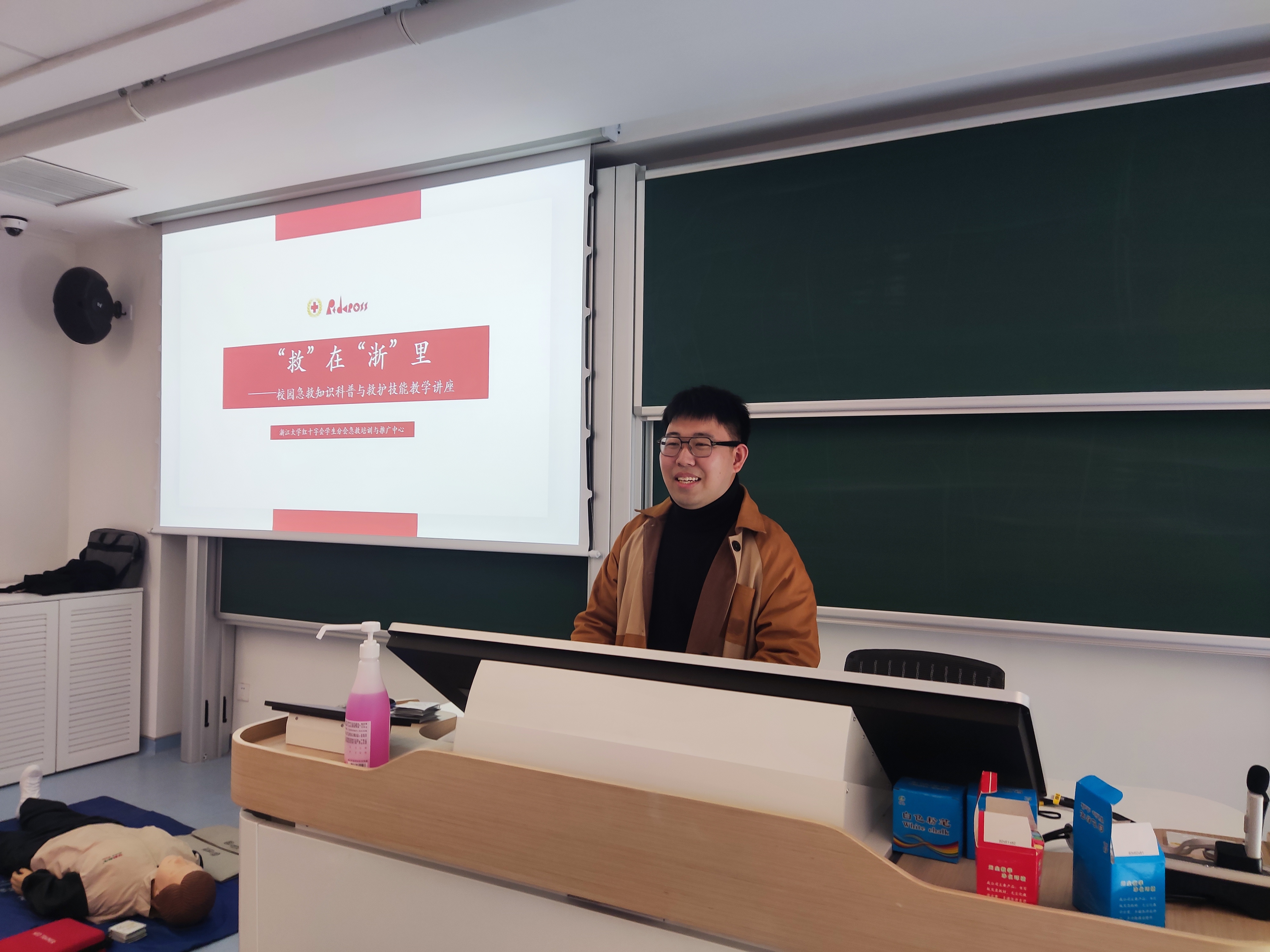 为帮助大学生掌握急救知识和技能,推广急救教育。4月7日下午14:15,面向材料学院2021级本科生的形势与政策Ⅱ讲座于北2-225教室顺利举行。本次讲座主题为“救”在“浙”里——校园急救知识科普与救护技能教学,由材料学院团委与浙江大学红十字会急救推广与培训中心联合举办。