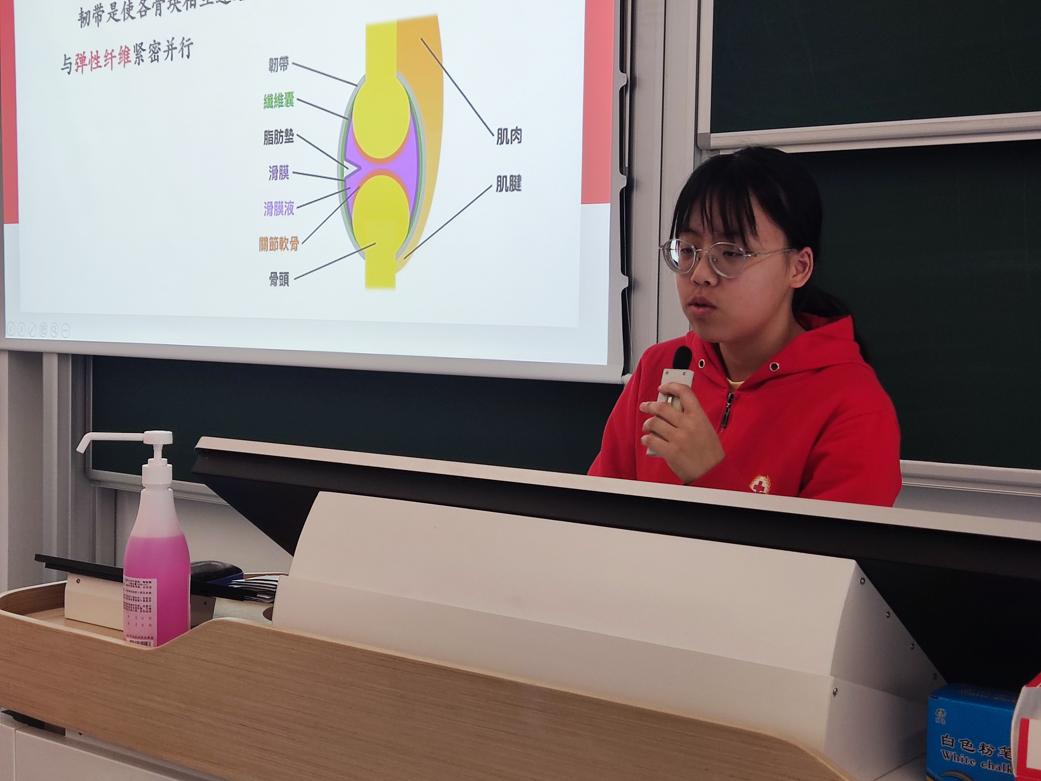 余思博同学给大家介绍了运动过程可能出现的一些意外伤害,如肌肉拉伤、抽筋,并讲解了相关处理方法。