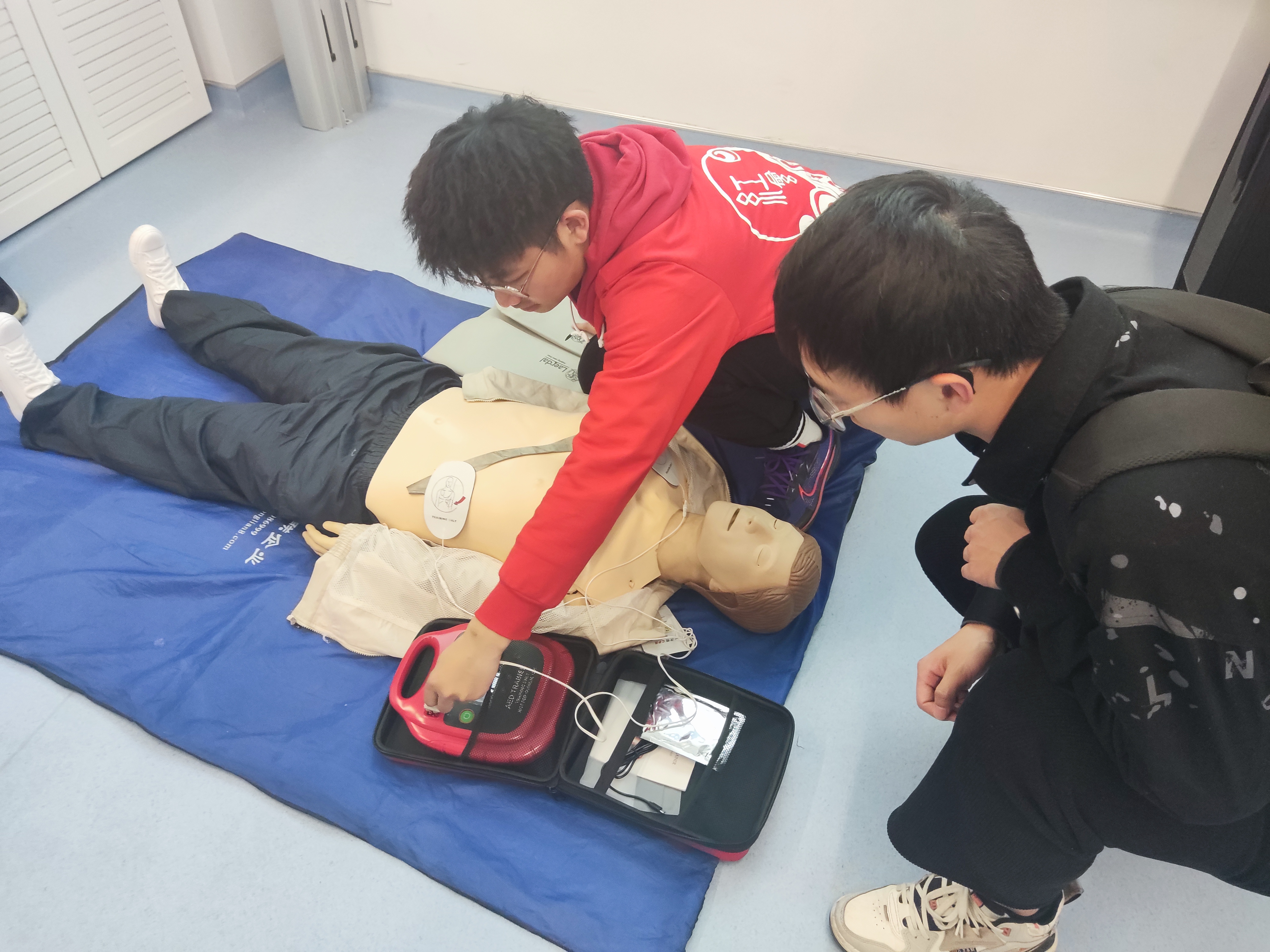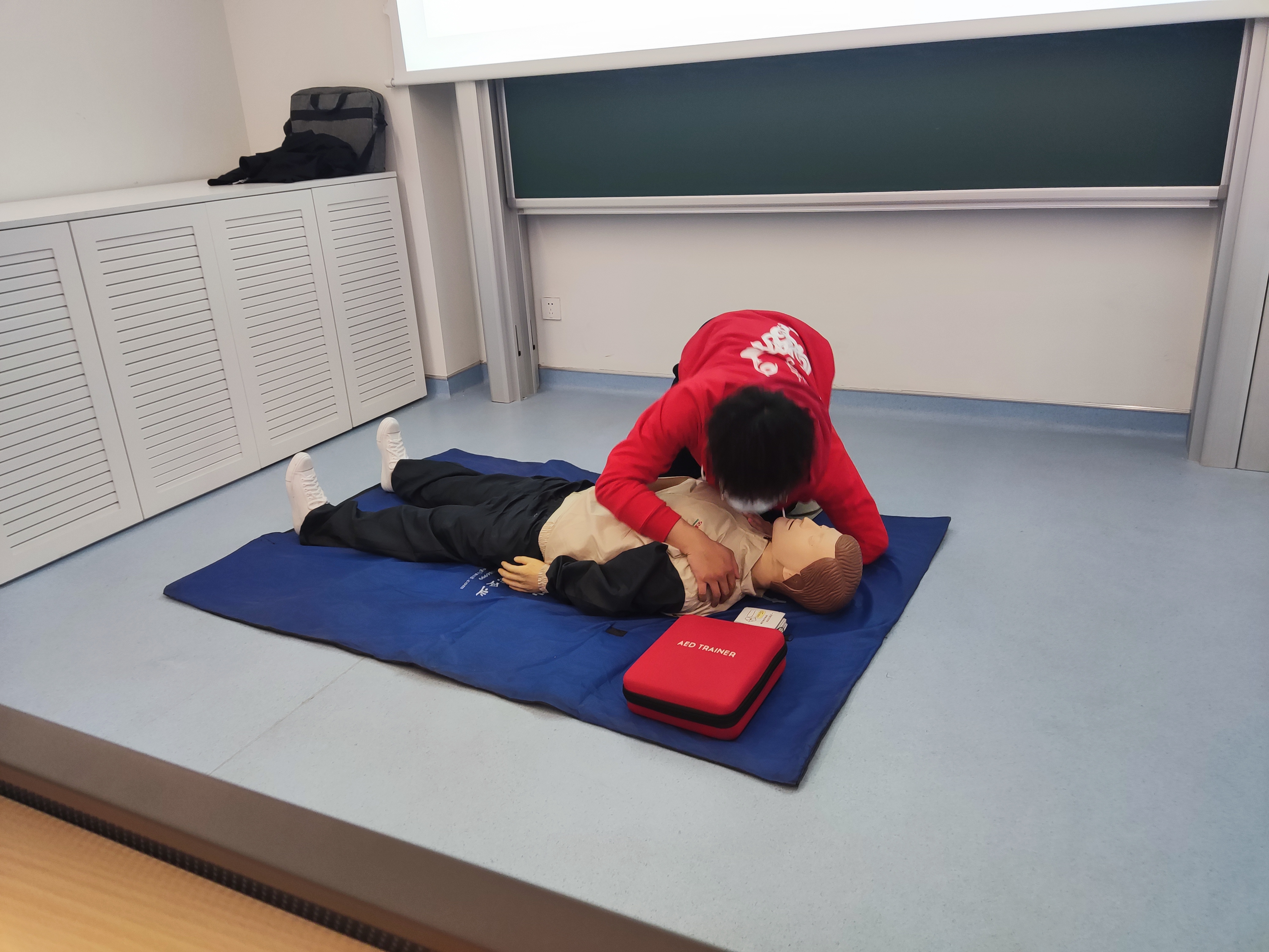 首先黄山珊同学为大家介绍了CPR与AED的使用方法。她详细地讲解了每一个操作步骤以及操作过程的注意事项。沈奕初同学为大家现场演示了完整的CPR过程,以及AED的具体操作方法。