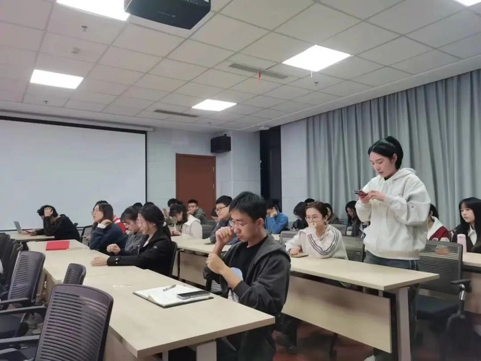 会议第二项,团支书李馨薇同志介绍并展示了支部纪律积分制的具体内容。根据支部党、团成员对青年大学习的学习次数、党、团员大会的出席签到等情况等进行积分、排序,以此希望可以提高党员、团员对支部各项活动的参与度。与此同时,支部团员依据2022.10-2023.03的支部团员参与情况完成了民主评议。