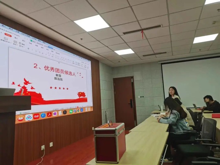 而后,团支部进行评优工作。此次参与评优的团员为韩雪、陈泓旭,两位成员分别对自己过去半年的团内表现及工作情况做了介绍和总结,并对未来工作做出了规划与展望。与会人员一致表决通过韩雪、陈泓旭为优秀团员。