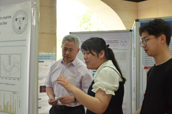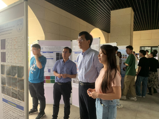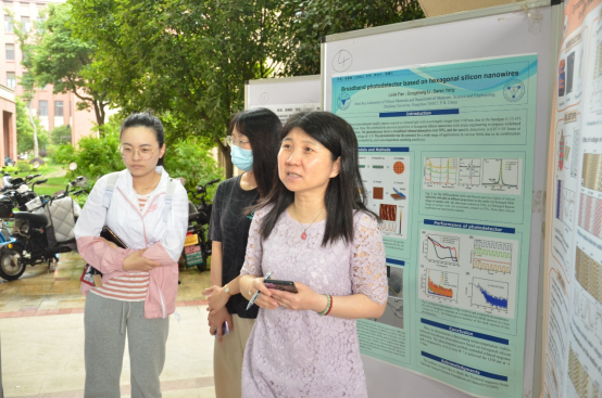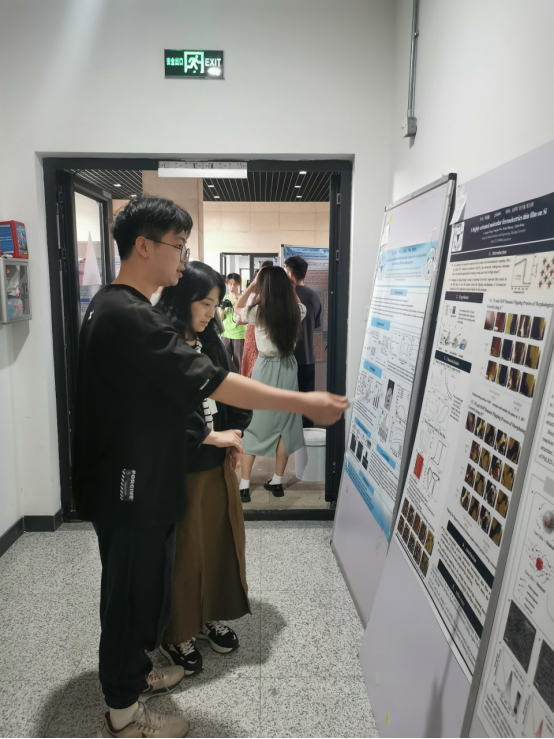随后,活动进入自由讨论与展示环节。春雨淅沥不影响老师和同学们的热情。现场参展的研究生们向前来观摩的老师与同学们详细地介绍自己的学术成果,并就自己研究领域的问题与他们进行探讨,现场讨论声此起彼伏,交流热烈。