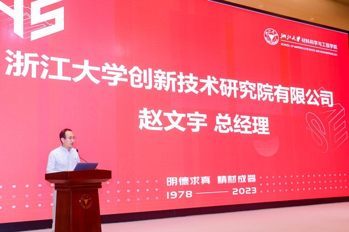 峥嵘岁月,华章溢彩。为感谢社会各界人士对材料学院的大力支持,大会进行了捐赠感谢授牌仪式。随后,浙江中晶股份有限公司徐一俊董事长、浙江大学创新技术研究院有限公司赵文宇总经理讲话。通过共同设立“精材毓秀”创新创业教育基金,培养优秀的科技成果转化人才,推进科技成果转化产业化。