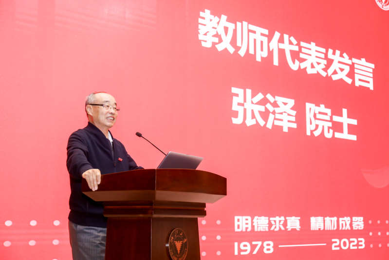 张泽院士作为教师代表为大会致辞。张泽院士以人喻学院,45年正好处在不惑和知天命之间。展望未来,很多事情又在惑与不惑之间。不惑的是,材料学院有坚定的信心、坚实的基础与条件开展工作;惑的是,围绕学科前沿、国家重大需求、社会发展和人民生活改善所提出的需求,材料学科仍然面临挑战。学术方向的选择,不仅影响自身的学术道路,也影响着浙江大学材料学院的未来发展。张泽院士指出,要实事求是总结过去,精神饱满展望未来,利用学科的优势,聚焦国家关键材料产业发展,打造世界领先的材料学科。