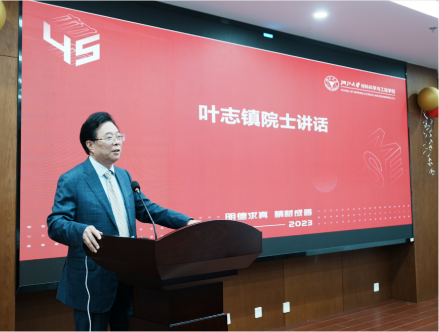 黄先海在致辞中向叶志镇院士致以崇高敬意,向各捐赠方对学校的关心支持表示衷心感谢。他表示,叶志镇院士是国际光电氧化锌领域的学术带头人,带领浙大材料学院实现了跨越式发展。在叶院士的善行义举感召下,多位热心校友、爱心人士和相关企业有意共同支持本基金,让学校全体师生深感鼓舞和振奋。他指出,在广大校友和社会各界贤达的广泛支持下,学校各项事业呈现蓬勃发展的强劲态势,主要办学指标和创新实力不断接近一流大学前列。当前,学校正认真学习贯彻习近平总书记对浙江大学系列重要指示精神,落实立德树人根本任务,希望学院和学科以此为动力,强化使命引领,围绕国家战略需求,为我国新材料产业培育发展注入新人才、新要素、新动能,以实实在在的成绩回报广大校友及社会各界的关心和厚爱,不负党中央和总书记的期待和重托。