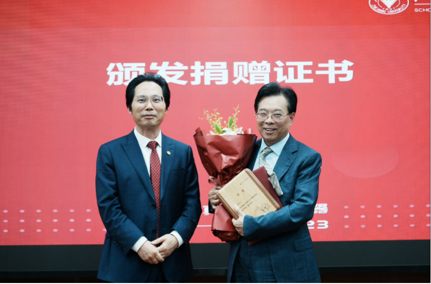 仪式上,黄先海为叶志镇院士颁发感谢铭牌及捐赠证书。