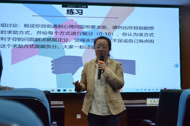 在关注环境与自身财物的安全的同时,学生们的心理健康也不容忽视。在简单的休息过后,浙江大学心理健康与咨询中心的黄芳老师为我们带来了精彩绝伦的心理安全讲座。黄老师首先讲述了常见的心理问题的识别,提示同学们可以通过情绪、认知、意志三个信号来进行自我关照并介绍了抑郁症、双相情感障碍、强迫症、进食障碍、失眠障碍等常见的心理障碍。随后,黄老师介绍了浙江大学心理健康教育与咨询中心并为同学们提供了一些心理援助热线。最后,黄老师邀请了几位同学分享自己所知的求助方式,同学们根据自身情况纷纷发表意见,现场氛围融洽。