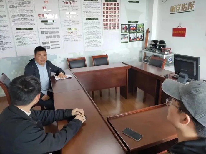 第三小组前往村委办公室,与村党总支组织委员兼民兵队长、退伍军人方孙华开展交流学习。